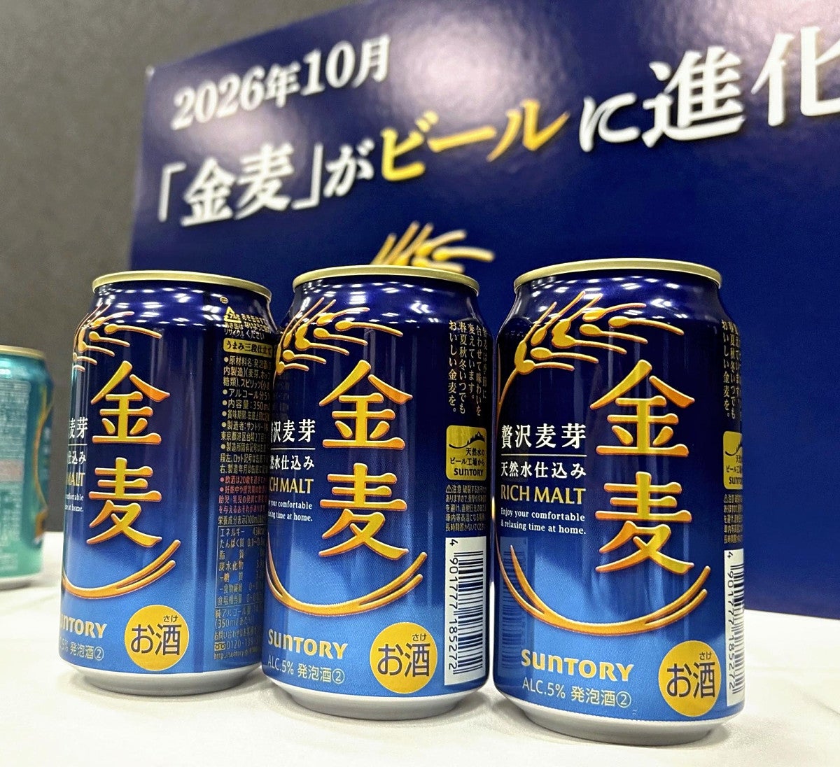 サントリーは29日、第3のビール「金麦」を2026年10月からビールとして発売すると発表した。酒税改正でビールが値下げとなるのに合わせて麦芽比率を高めつつ、割安感は維持し、手頃な価格帯の商品を求める消費者の支持拡大を狙う。